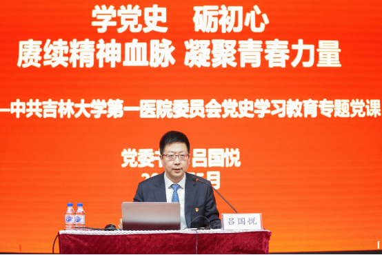 党课的最后,吕国悦寄语全院青年学子,希望大家铭记历史,不忘初心,学习和领悟革命先驱们为革命事业舍生忘死、奋斗终生的革命精神,培育和涵养新时代青年努力拼搏、勇于奉献,在各种艰苦条件下奋发图强、砥砺前行的时代精神。他勉励广大青年学子,励志、图强、奋进,做新时代合格的医者,为祖国的医疗健康事业筑牢根基,为人民的生命安全和身体健康保驾护航。
